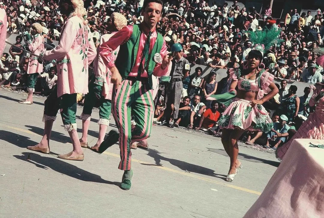 Hélio Oiticica parading with the Samba School Estação Primeira de Mangueira, Rio de Janeiro, circa 1965-1966.